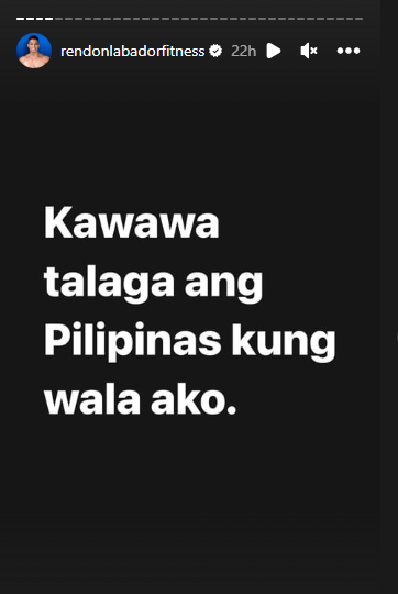 Kaugnay ng pagkawala ng kaniyang social media platforms at pati na rin sa hindi pagkagamit ng kaniyang email, sinabi ng "man of the hour" na si Rendon Labador na sa palagay niya, kawawa ang Pilipinas kung wala siya sa social media at hindi makasisita ng mga personalidad na sa palagay niya ay kasita-sita.