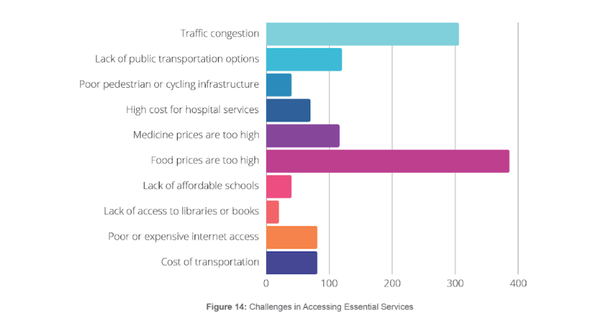 Kabilang pa sa mga balakid ang kakulangan sa pampublikong transportasyon (29 porsiyento), hindi ligtas na bangketa at daanan ng bisikleta (10 porsiyento), mataas na presyo ng gamot (17 porsiyento), at pangkalahatang gastos sa transportasyon (19 porsiyento).