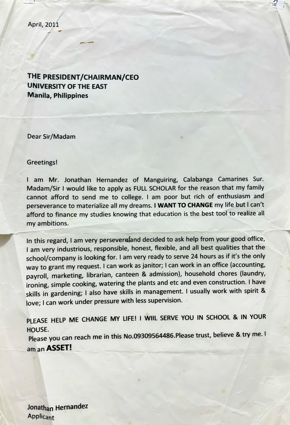 Bagama’t hindi na niya nagawa pang makatuntong sa Manila, natagpuan naman ni Ethan ang katuparan ng pangarap sa University of the Philippines Los Baños matapos niyang ibigay ang kopya ng liham na ipinadala rin niya sa iba pang unibersidad.