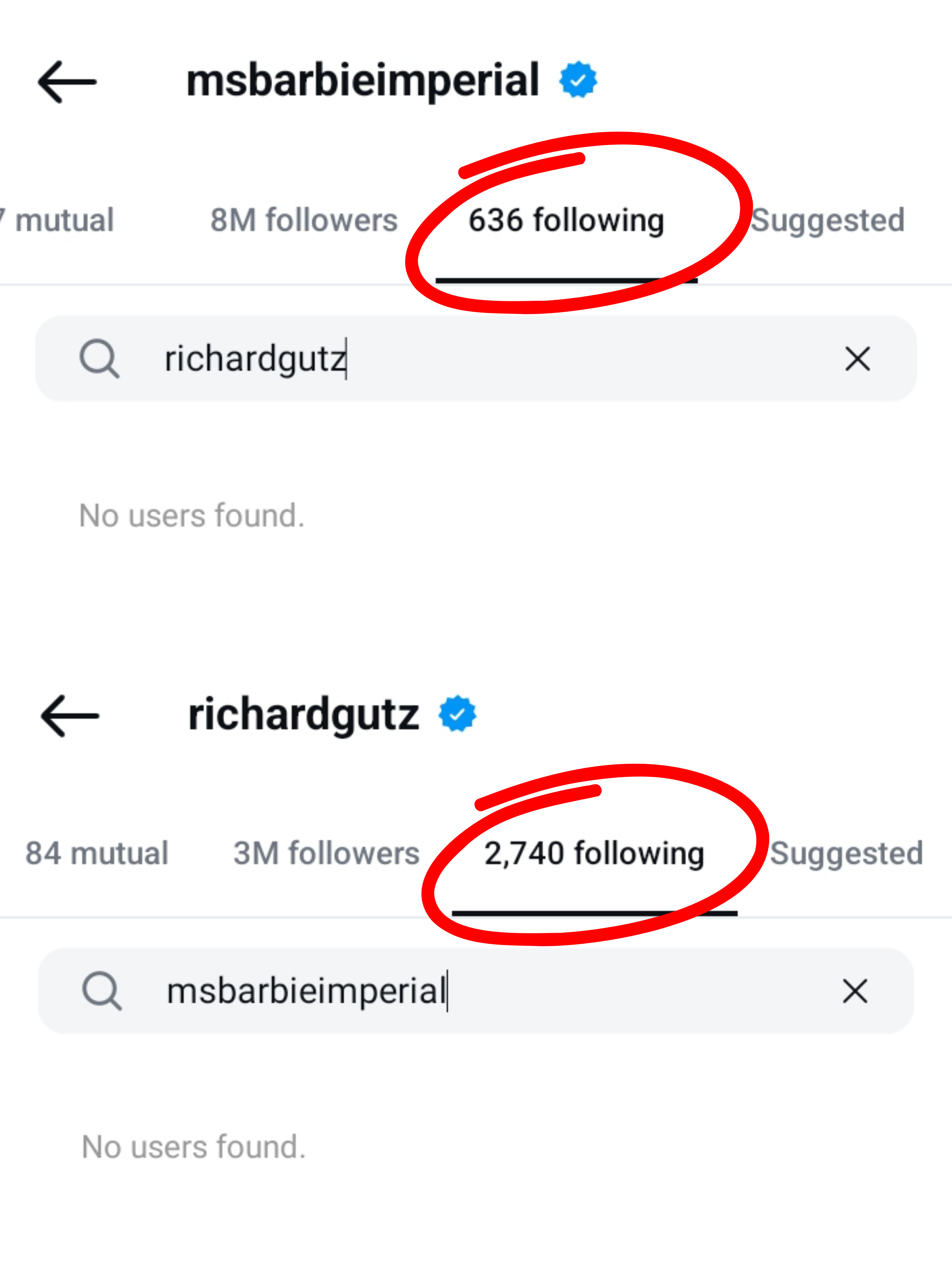 Sa pangalawang set naman ng screenshots, makikitang pareho nang may nadagdag na isa sa fina-follow ng dalawa sa kani-kanilang accounts.