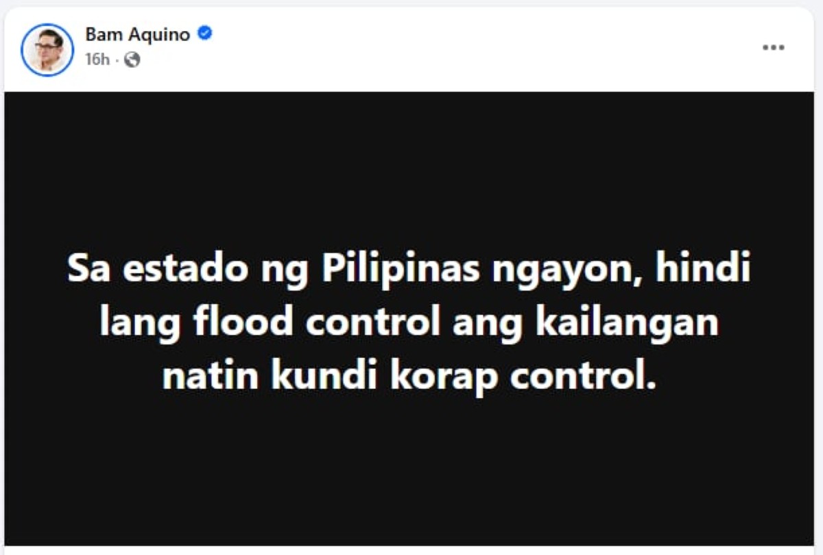 “Sa estado ng Pilipinas ngayon, hindi lang flood control ang kailangan natin kundi korap control,” ani Sen. Bam.
