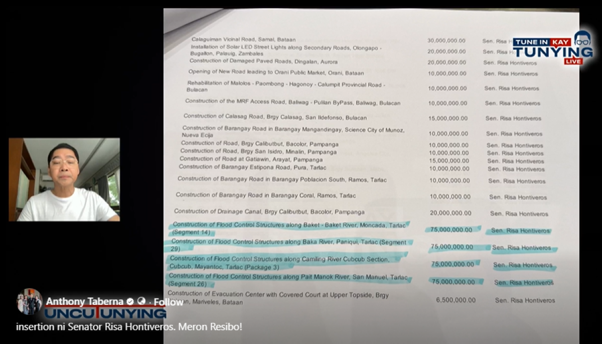 Naglabas ng "resibo" ang broadcast journalist na si Anthony Taberna hinggil sa naisiwalat niyang may insertions o amyenda rin si Sen. Risa Hontiveros sa national budget, batay sa 2025 General Appropriations Act (GAA).