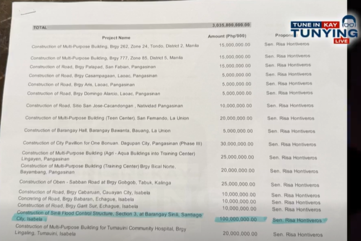 Sa kabuuan umano, ang total ng lahat ng proyekto ni Hontiveros ay nasa ₱3,035,800,000.