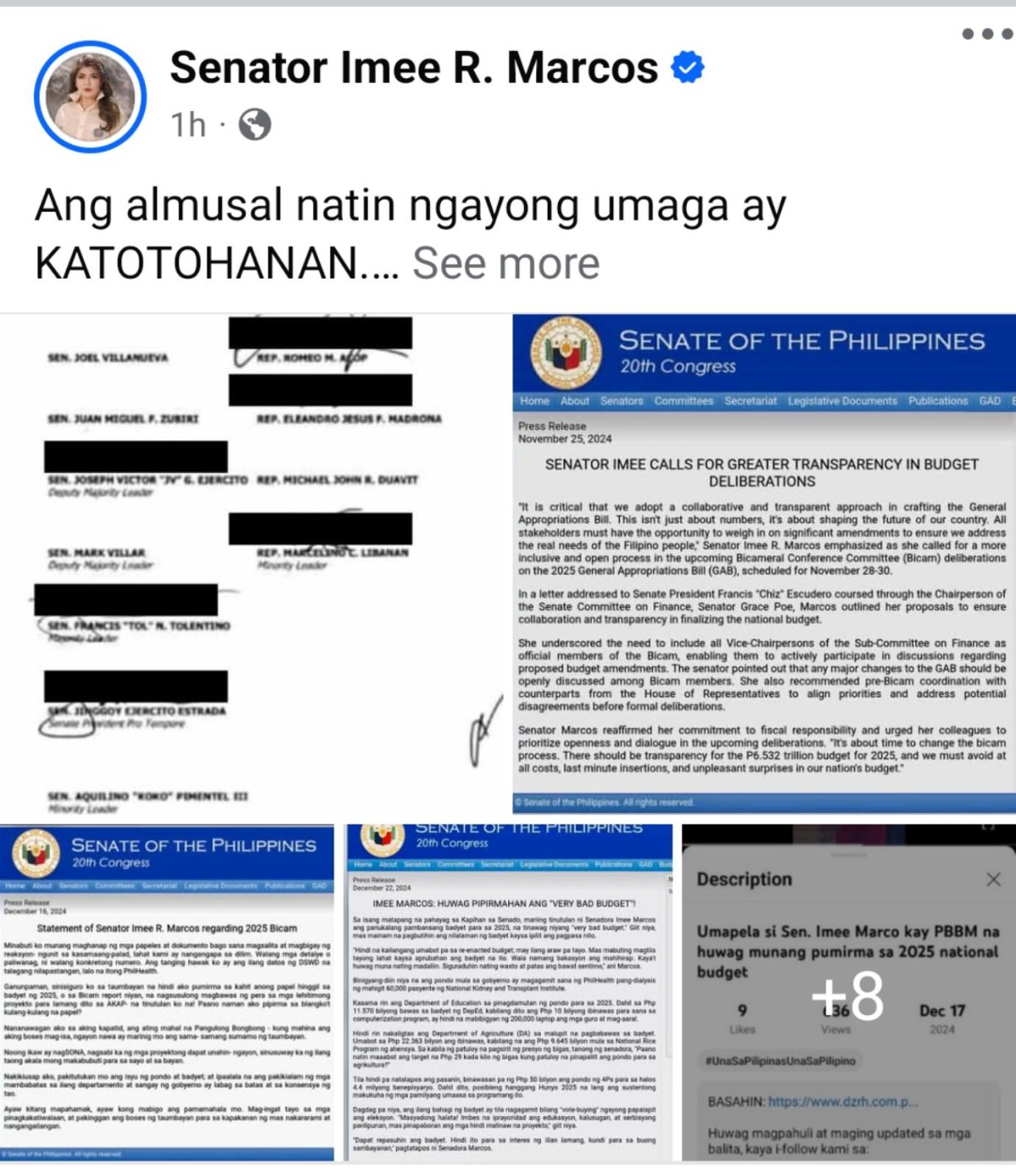 Kalakip ng post na ito ang larawan ng mga ulat at pahayag tungkol sa pananaw ng senadora sa nakaraang budget.