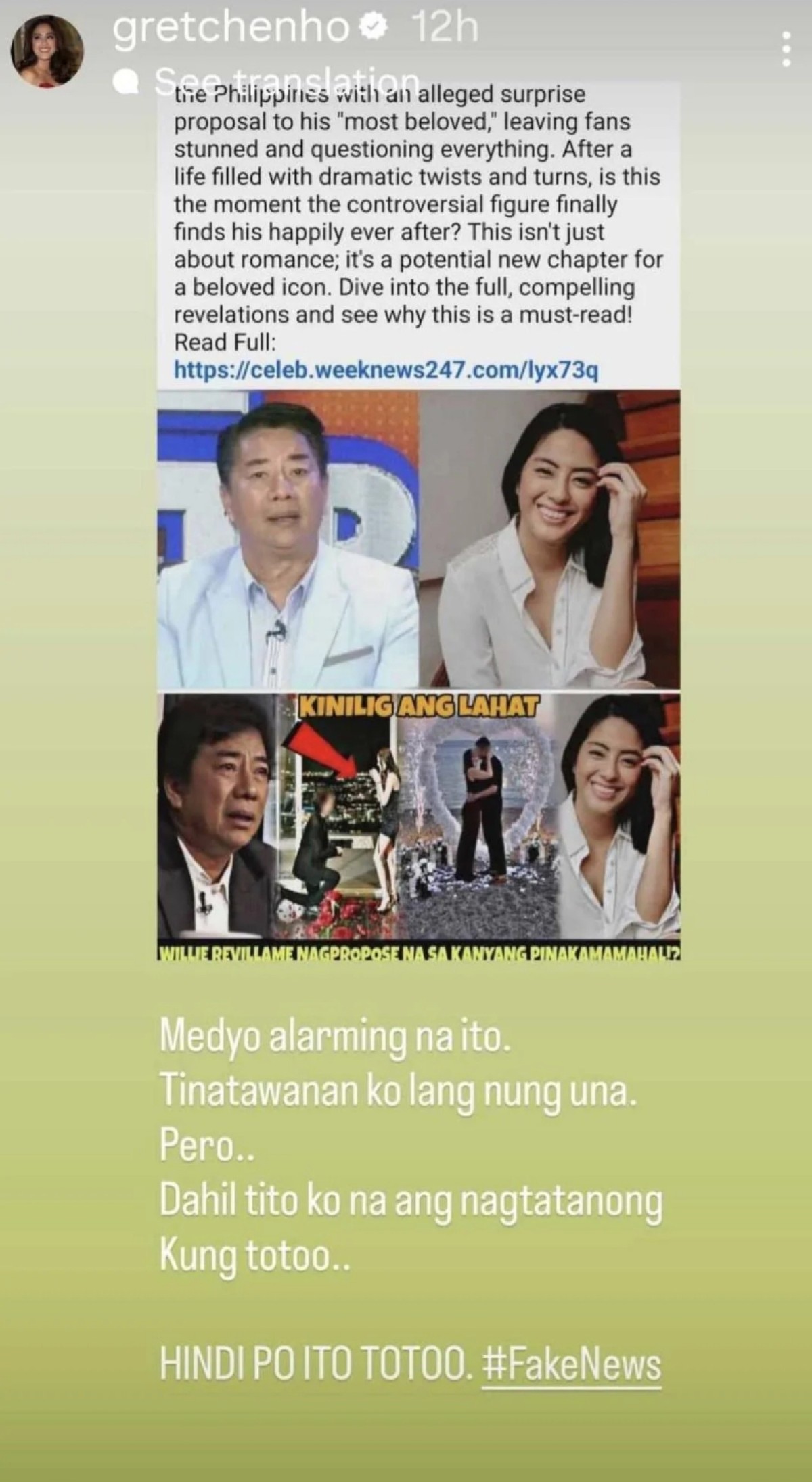 "Tinatawanan ko lang nung una. Pero.. Dahil tito ko na ang nagtatanong kung totoo.. HINDI PO ITO TOTOO," saad ni Gretchen, na may hashtag pang #FakeNews.