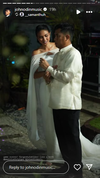 Ikinasal na si Miss Universe Philippines 2021 Beatrice Luigi Gomez sa kaniyang boyfriend na si John Odin, na isang DJ at music producer.