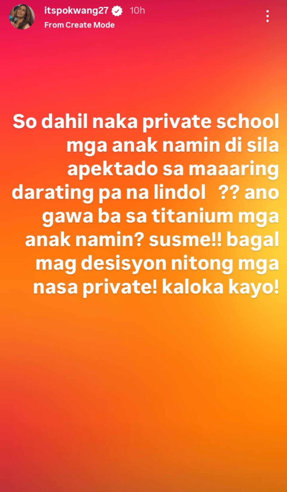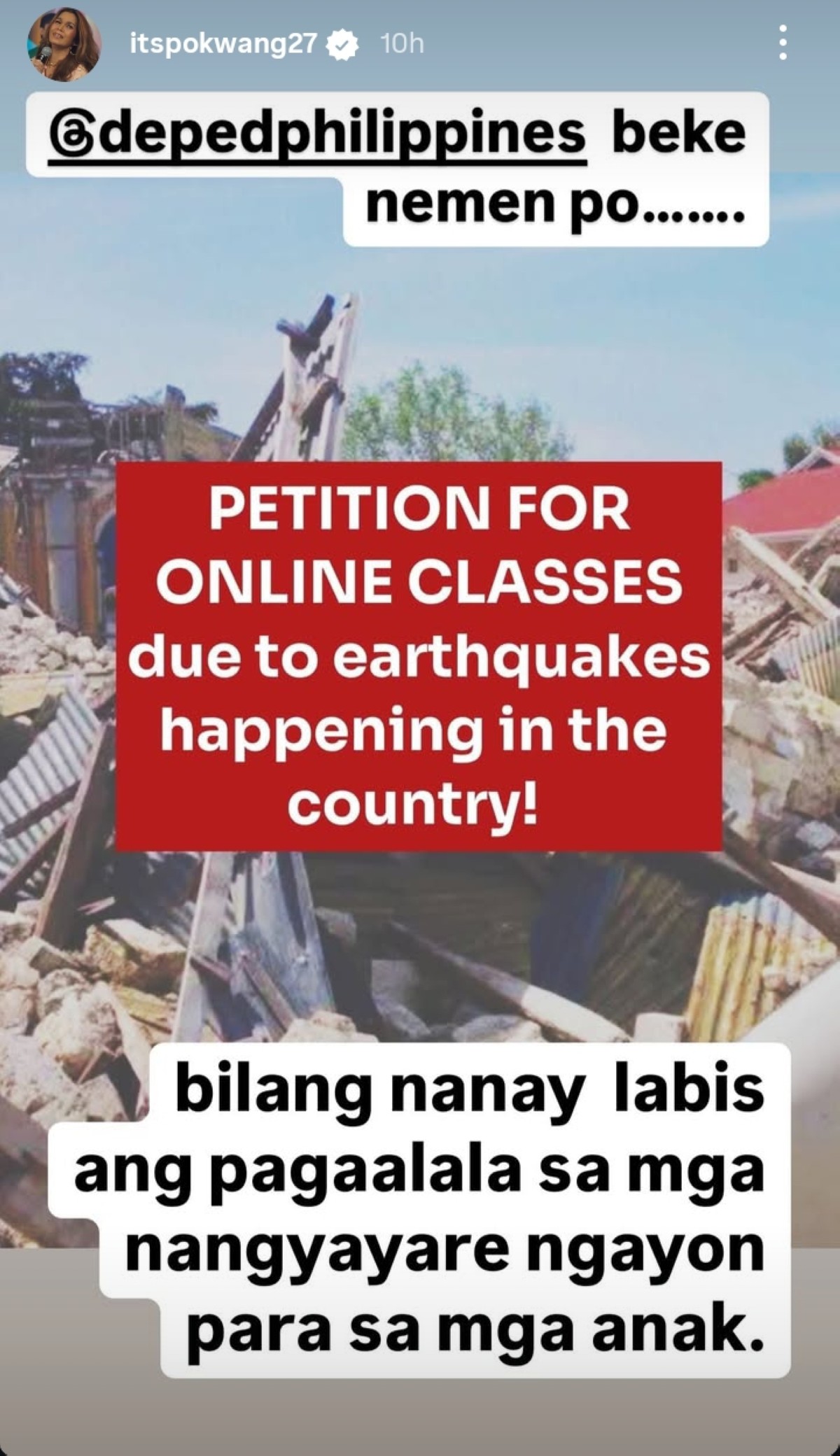 "So dahil naka private school mga anak namin di sila apektado sa maaaring darating pa na lindol??" saad ni Pokwang.
