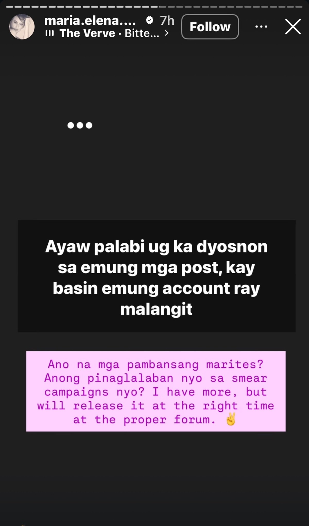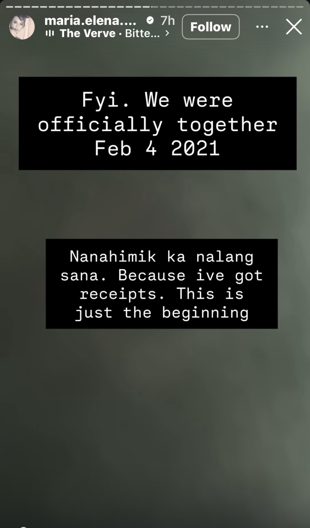 “Nanahimik ka nalang sana. Because I’ve got receipts. This is just the beginning," ani Ellen sa isa niyang Instagram story.