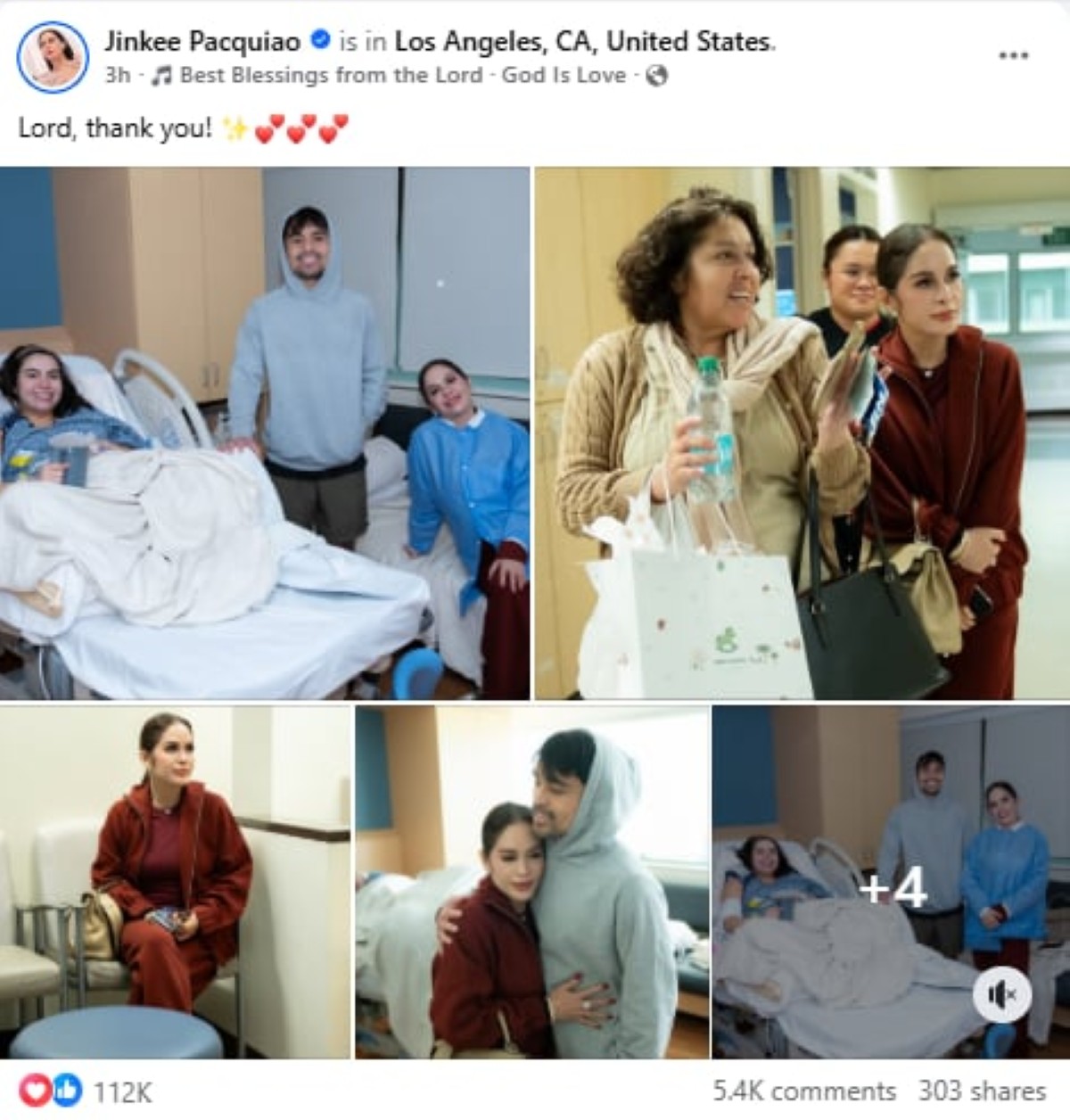 Sa kaniyang Facebook post nitong Huwebes, Nobyembre 20, napahingi na lamang ng pasasalamat sa Diyos si Jinkee matapos manganak ang kaniyang manugang.