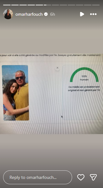 Pero sa Instagram story niya, ibinahagi niya ang resulta ng larawan sa pagsusuri ng Artificial Intelligence (AI), na ang larawan ay "100% human" at hindi AI-generated.