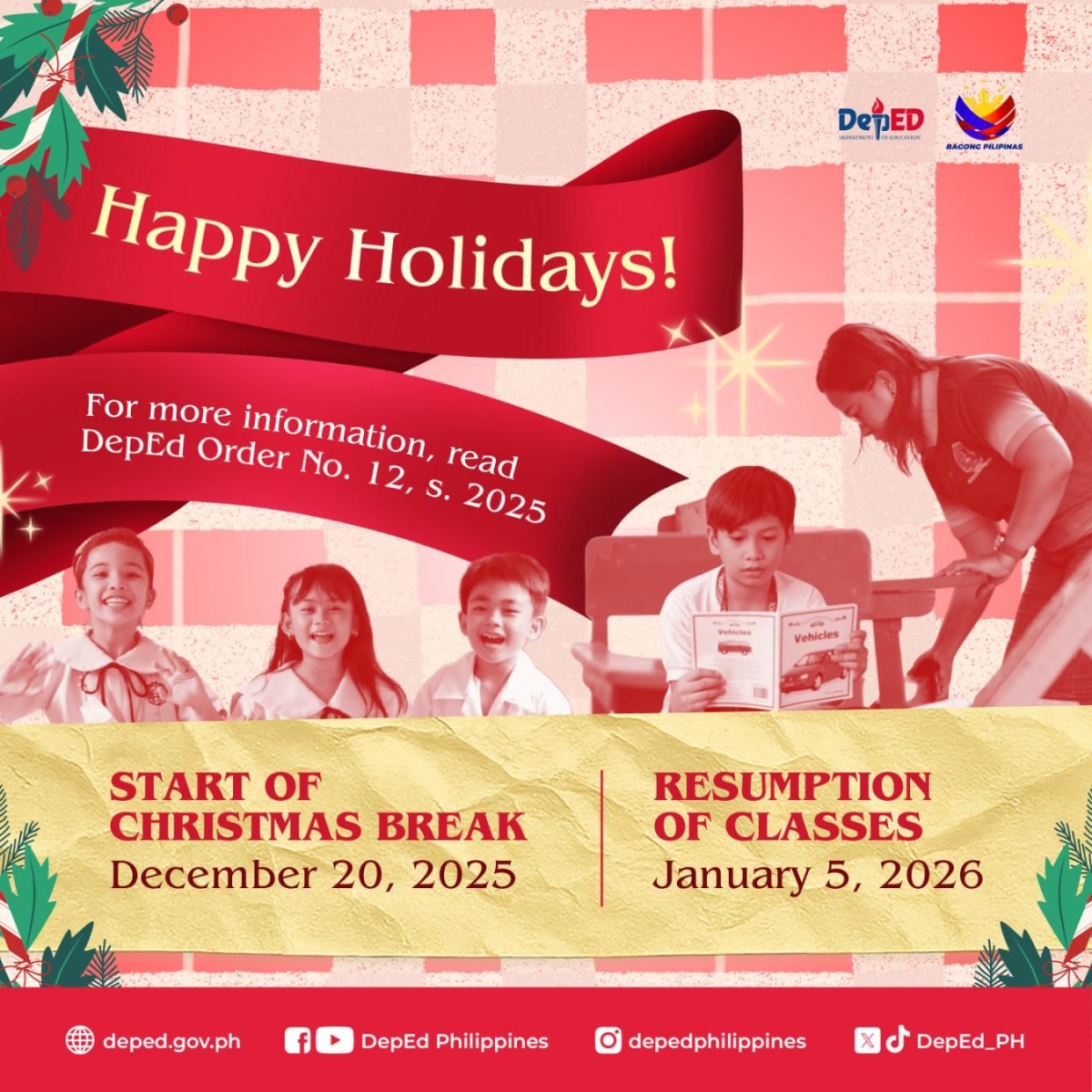 Pormal nang inanunsyo ng Department of Education (DepEd) ang simula ng Christmas break ng mga mag-aaral para sa taong pampaaralan 2025-2026.