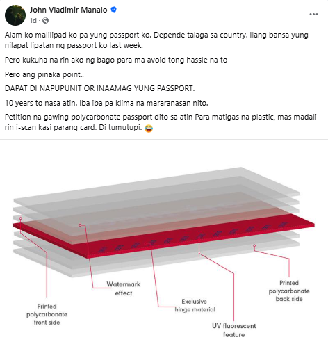 Kaya petisyon niya na gawing polycarbonate ang passport para mas madali raw itong ma-scan.