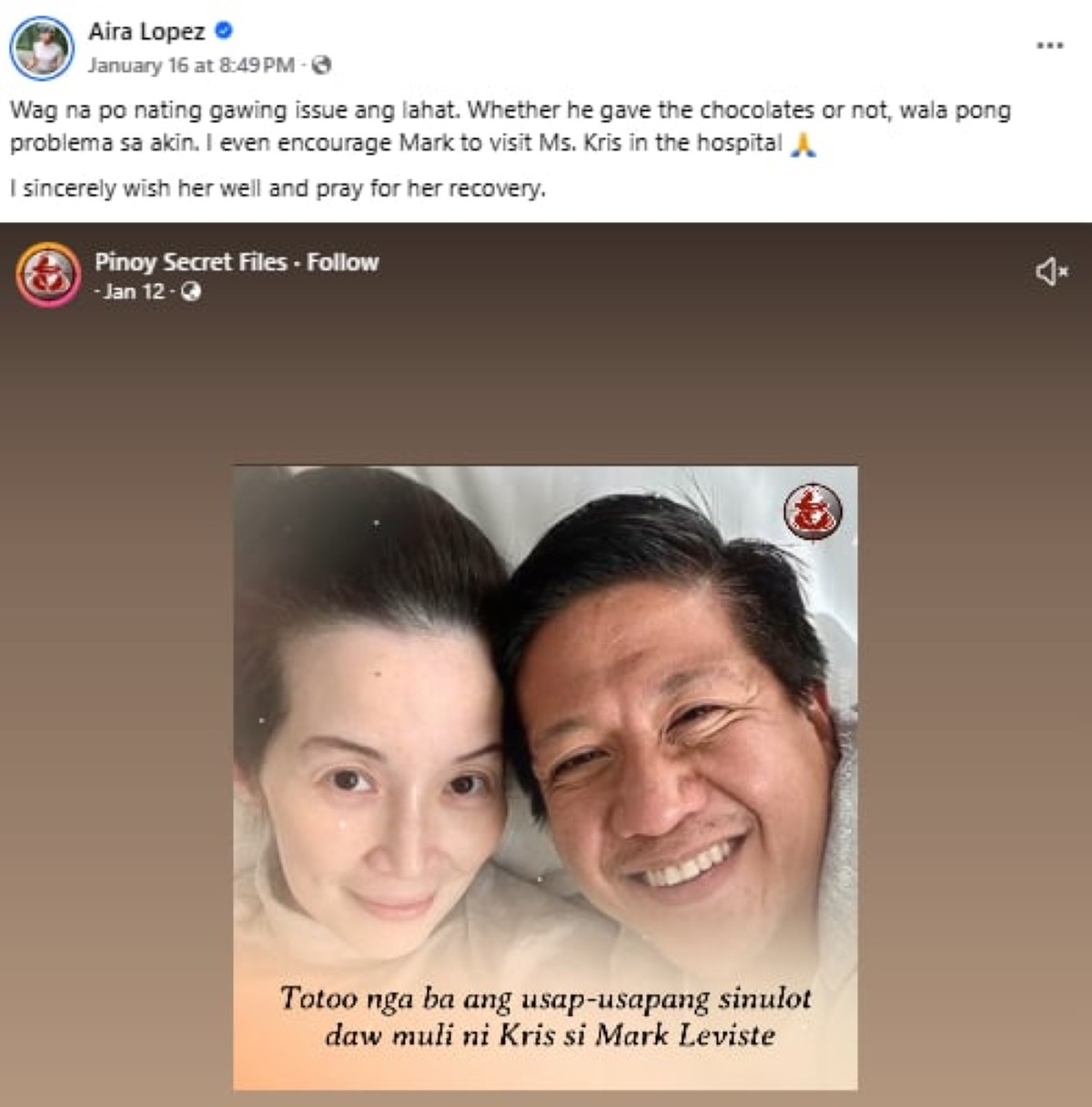 Aniya, “I even encourage Mark to visit Ms. Kris in the hospital…I sincerely wish her well and pray for her recovery.”