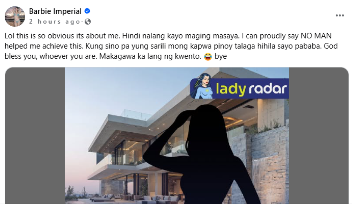 Pinalagan ng Kapamilya actress na si Barbie Imperial ang isang kumakalat na blind item tungkol sa isang "lovely celebrity" na may "new posh home sa south."