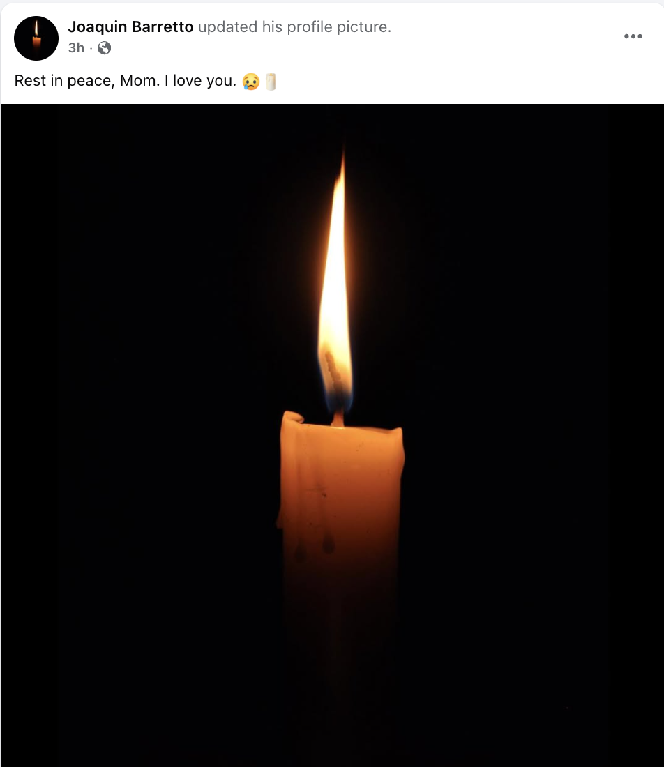 Kinumpirma ni Joaquin, kapatid ng tatlong aktres, ang pagpanaw ng ina sa isang Facebook post kalakip ang bagong profile picture na may kandila.