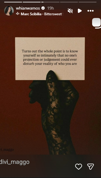 Sa naturang post, makikita ang isang larawan na may kalakip na mensahe hinggil sa malalim na pagkilala sa sarili at sa pagiging hindi apektado ng opinyon o paghusga ng ibang tao.