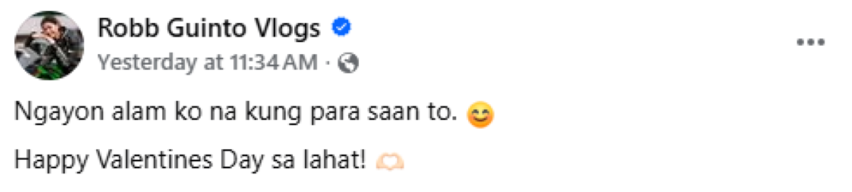 Naka-post ito sa verified Facebook account ni Robb na may FB name na "Robb Guinto Vlogs."