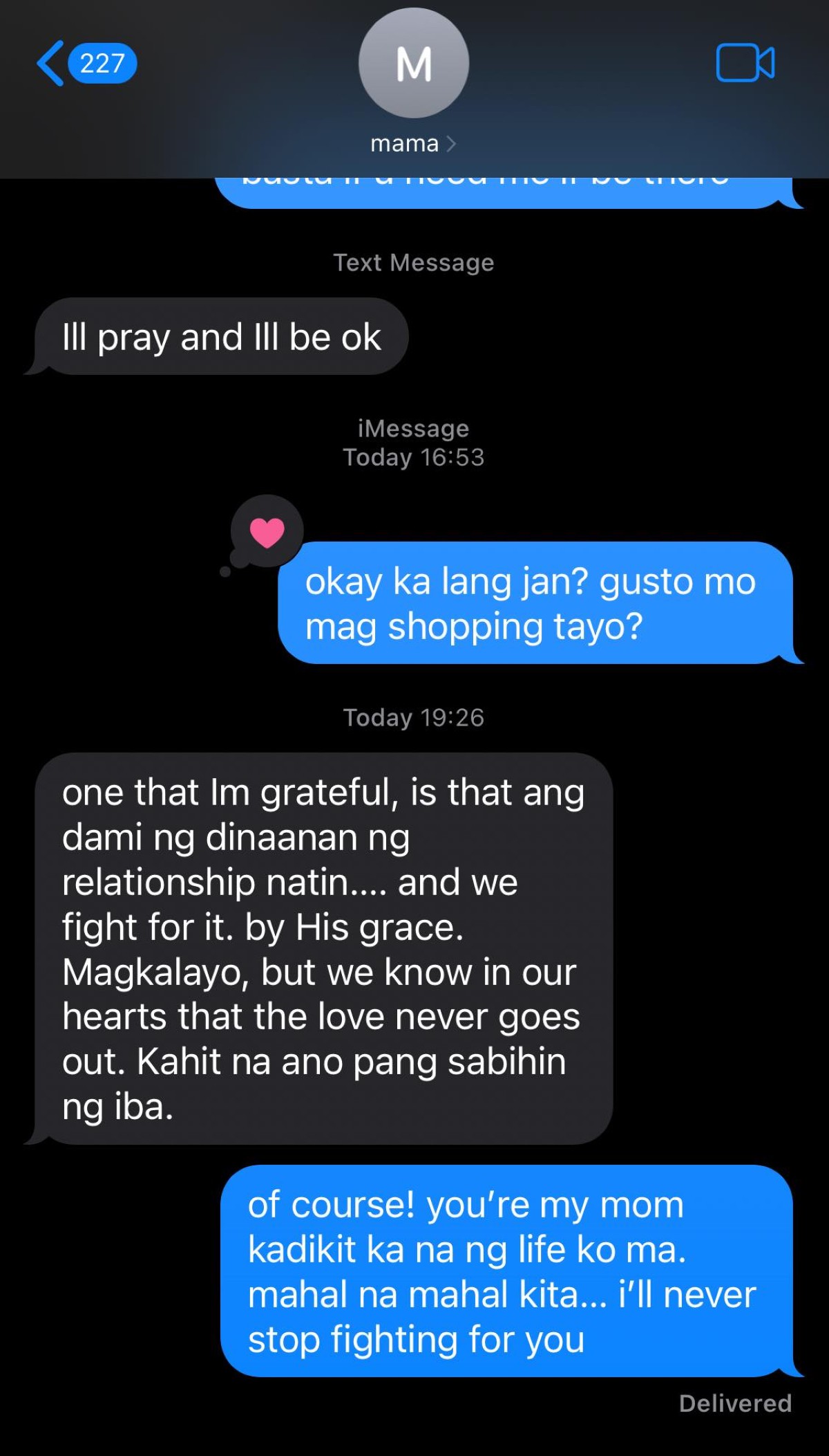 "Yung post mo na Convo niyo mag ina,haysst tagos sa puso talaga para sa akin .yung simpleng kumustahan Pero bakit naluluha ako palagi ."