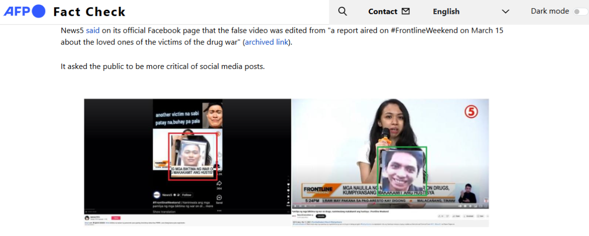 Ayon sa opisyal na Facebook page ng News5, inedit ang kumalat na video mula sa isang ulat na ipinalabas sa weekend version ng Frontline Pilipinas noong Marso 15 tungkol sa mga mahal sa buhay ng mga biktima ng drug war.