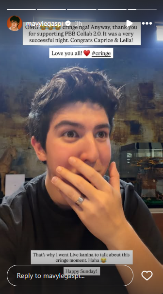 Dagdag pa niya, "That’s why I went Live kanina to talk about this cringe moment. Haha. Happy Sunday!”