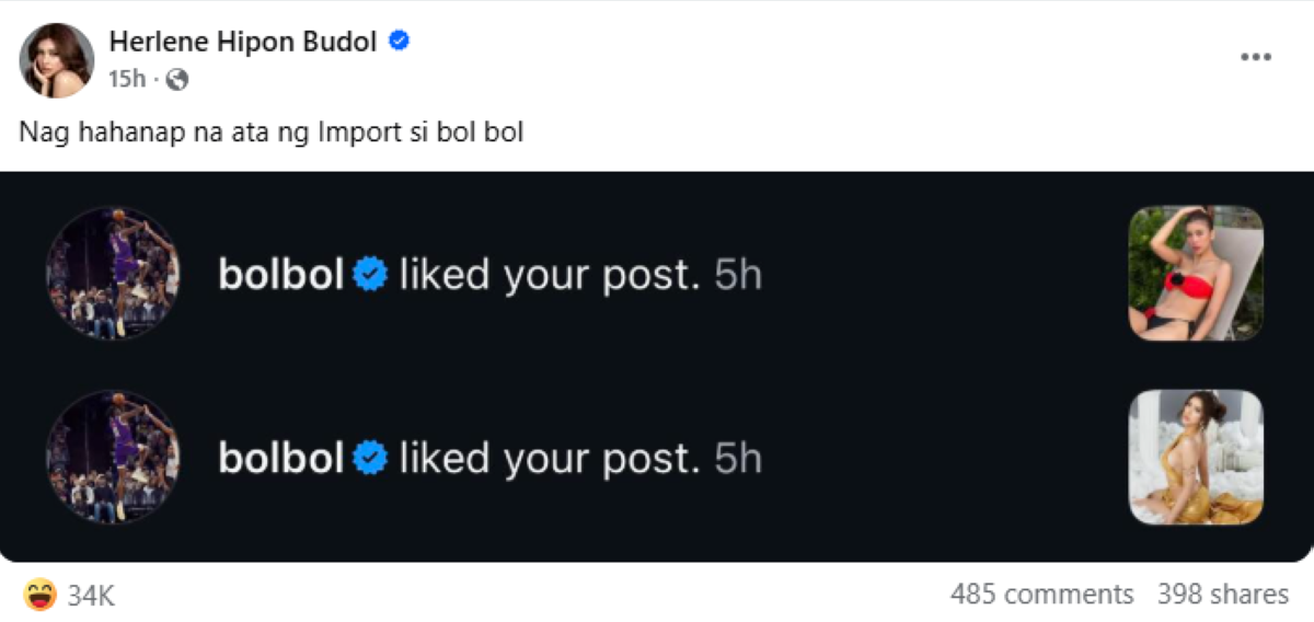 Pabirong caption ni Herlene, "Nag hahanap na ata ng Import si bol bol."