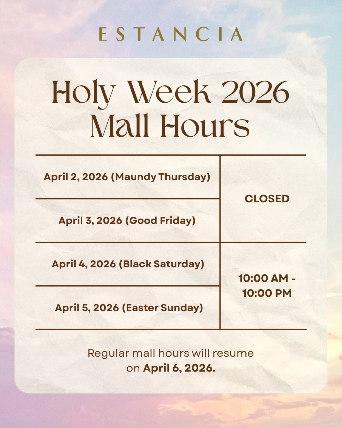 Ayon sa social media post ng Estancia, sarado ang kanilang establisyimento mula Abril 2 hanggang 3, at muling magbabalik operasyon sa Abril 4.