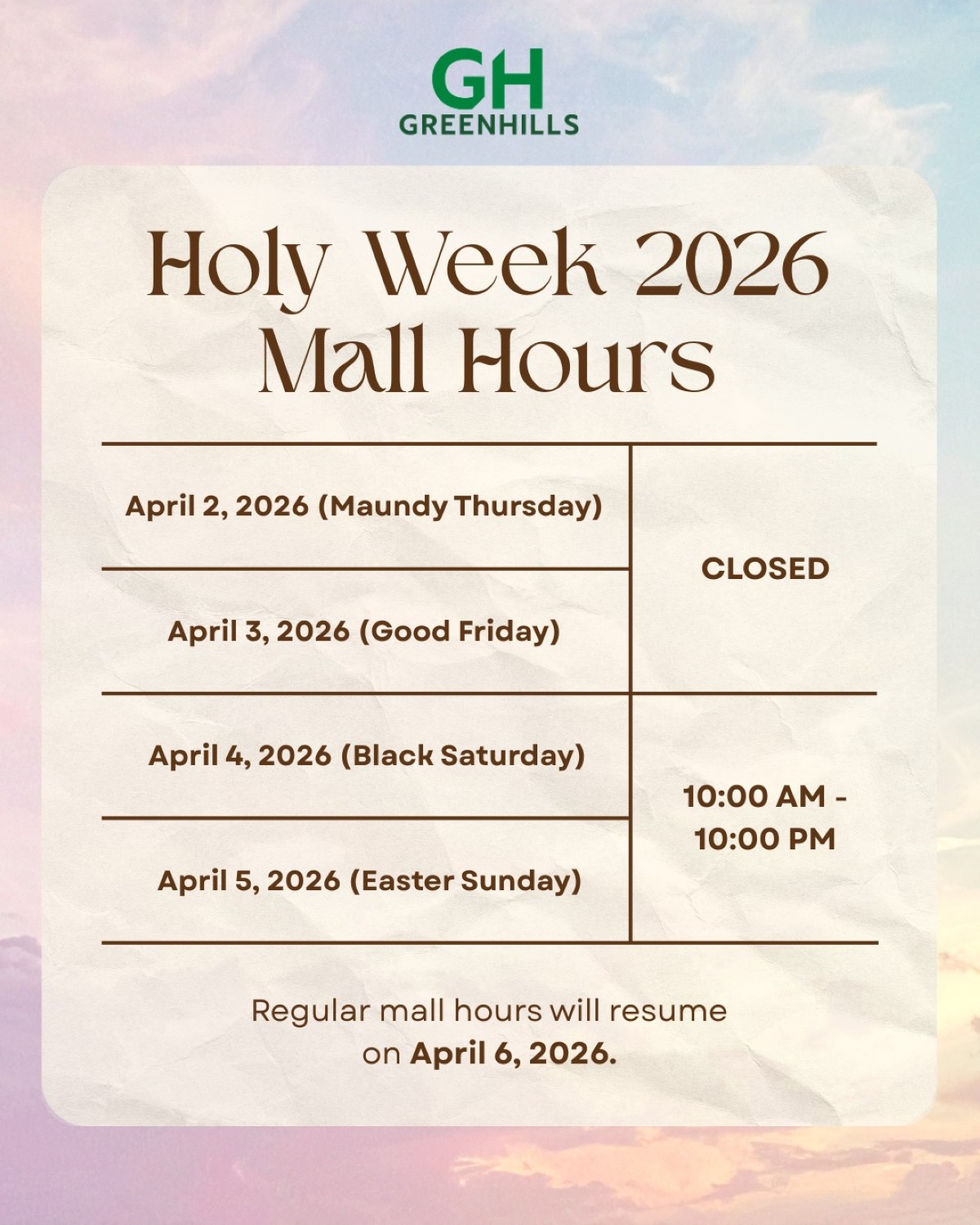 Ayon sa website ng SM Supermalls, ang kanilang adjusted mall hours ay magsisimula sa Lunes Santo, Marso 30, hanggang Linggo ng Pagkabuhay, Abril 5.